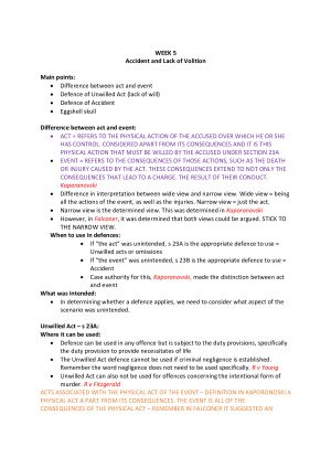 - Accident and lack of volition - Insanity and automatism - Intoxication - Mistake - Provocation - Defensive force - Emergency and duress