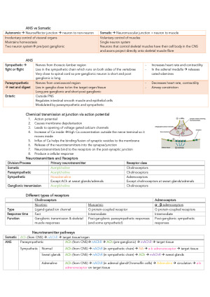 I have made a very comprehensive but easy to understand study guide that includes all the lecture and textbook material covered during the course. Includes all drugs studied in the course in table format with colour coding for easy understanding. Format follows order of module during the course. Topics covered: Pharmacodynamics Autonomic nervous system Drug discovery then Pharmacokinetics Pharmacogenomics Drugs in sports Eicosanoids and Immunopharmacology Drugs in the GIT Drugs to treat Asthma Drugs in Cardiovascular system Drugs to treat Diabetes Central nervous system pharmacology Drugs to treat neurodegeneration Drugs to treat depression Drugs of dependence Drugs for pain Venom and toxins Indigenous medicine Toxicology Selective toxicity Anticancer drugs Drug discovery now