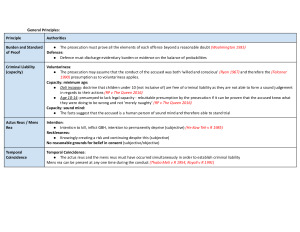 Topics Covered: Burden and Standard of Proof, Criminal Liability (Capacity), Actus Reus, Mens Rea, Temporal Coincidence, Common Assault, Aggravated Assault, Sexual Assault, Larceny, Fraud, Complicity, Mental Illness, Automatism, Intoxication, Self Defence, Duress, Bail,
