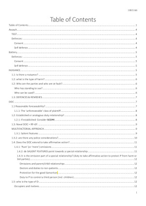 Exam notes that cover the entire course with factual analysis of cases included in topics. Notes also include sentence structures that can be adapted for the final exam. Relevant provisions of the Wrongs Act are included within the relevant topic.