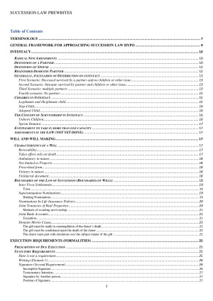 Topic 2: Intestacy Topic 3: Wills and Will Making Topic 4: Mental Requirements Topic 5: Execution Requirements for Will Making/Formalities Topic 6: Exceptions to Formal Requirements Topic 7: Changing a Will Topic 8: Interpretation of Wills Topic 9: Gifts by Will Topic 10: Family Provision Topic 11: Personal Representatives Topic 12: Grants of Representation Topic 13: Functions and Duties of Personal Reps Topic 14: Powers, Rights and Liabilities of PRs