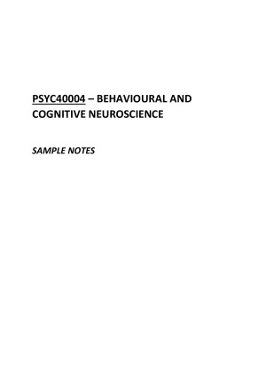 Comprehensive H1 (95) Behavioural and Cognitive Neuroscience Notes