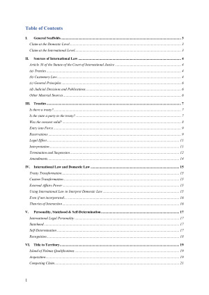 * Comprehensive notes for the entirety of the USYD LAWS1023 course [PINPOINTS FOR ALL CASES AND LEGISLATION] * Exam answers for multiple variations of problem questions (see sample notes for an example) * General scaffolds for answering a question involving a claim at either the domestic or international level TOPICS COVERED * Sources of international law * Treaties * Interaction between international law and domestic law * Personality, statehood, self-determination * Title to territory * State jurisdiction * Immunity from jurisdiction * State responsibility * Use of Force * Implementation, enforcement, accountability
