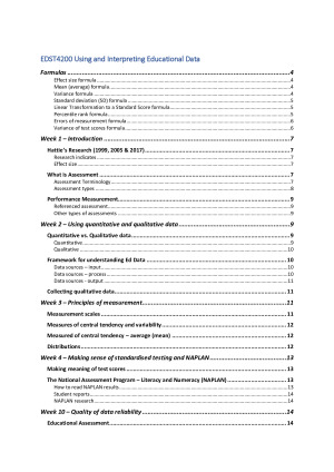 EDST4200 Exam notes with summarised lectures, readings and formulas