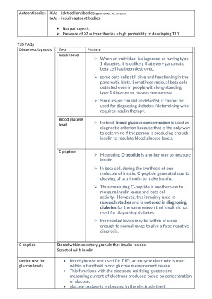 M2M - Molecules to Malady (BIOM30002) Type 1 Diabetes revision notes and summarised FAQs- H1 (83)