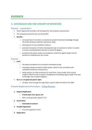 Easy to follow comprehensive MLL410 exam notes. Notes thoroughly cover each MLL410 topic for the unit and clearly summaries the content, case law and legislation. Includes answer guides for Copyright, Patent and Design question. See attached sample.