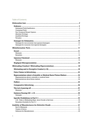 List of topics covered: - Defamation Law - Misinformation Torts - Misleading Conduct - Liability of Manufacturers for Defective Goods - Other Torts protecting economic interests