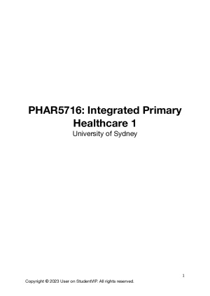 These notes cover all of the lecture material for the course, which includes carefully selected diagrams from the assigned textbook as well as additional images to enhance understanding of the subject matter. The notes are designed for easy reading and comprehension, with helpful definition boxes and other features to aid in learning Topics include: - Asthma - Coughs, Cold and flu - Gastrointestinal conditions and Medicines - Complementary medicines in Respiratory and Gastrointestinal health - Communication - Allergic rhinitis and Antihistamines - COPD - Sleep disorders (OSA) - Ethical communication - Dyspepsia - Irritable Bowel Syndrome - Drugs in Pregnancy and Lactation - Infant nutrition and Eczema in paediatrics