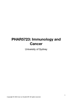 These notes cover all of the lecture material for the course, which includes carefully selected diagrams from the assigned textbook as well as additional images to enhance understanding of the subject matter. The notes are designed for easy reading and comprehension, with helpful definition boxes and other features to aid in learning Topics include: - Cancer - Immunological disorders