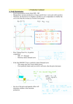 CONTENTS 1. Production Continued a. Profit Maximisation b. Marginal Revenue c. SR supply curve 2. Perfect Competition 3. Cost Structures a. Constant b. Increasing c. Decreasing 4. Producer Surplus 5. General Equilibrium and efficiency a. General Equilibrium b. Efficiency - First Welfare Theorem c. Edgeworth Box - Second Welfare Theorem 6. Monopoly a. Monopoly set up b. Price Discrimination c. Price Regulation 7. Duopoly a. Cournot Model b. Bertrand Model c. Entry and Exit 8. Other a. Price Leadership Model b. Monopolistic Competition c. Monopsony 9. Asymmetric Information a. Moral Hazard b. Adv Selection c. Asymmetric information in competitive markets (Lemons)