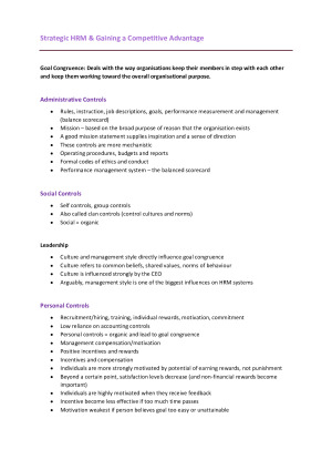 Full semester of subject notes. - Strategic HRM and gaining a competitive advantage - Managing HRM and global culture - Leadership, organisation culture and diversity - Managing knowledge - Employee engagement and well-being - Training and motivation - Attraction and retention - HRM and achieving a competitive advantage