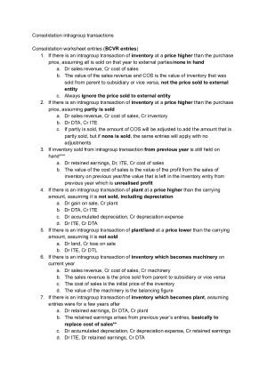Do you struggle to understand the content in ACCT2201? Do you still have trouble solving problems even with the formula given in the lecture slides (esp. consolidation topics)? If you do, then you have come to the right place. In this formula list, I don't just simply list the formula, but I also offer shortcuts and break down everything into steps so that they are clearer for you. when you use them to work on practical questions. Everything from weeks 1-12, all lectures, tutorial questions, and assignments. Reviewing this will be very useful for the final exam. I personally got 94% in my final grade using my notes. Have trouble with consolidation? You won't regret purchasing this! Topics Covered: 1. Accounting Regulation and Conceptual Framework 2. Application of Accounting Theory 3. Fair Value Measurement 4. Inventories 5. Property, Plant, and Equipment 6. Intangible Assets 7. Impairment Assets 8. Statement of Cash Flows 9. Business Combinations (consolidation)