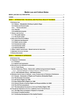 - A very well summarised, detailed set of full distinction notes for Media Law at Macquarie University for Juris Doctor and Undergraduate Law Students completing Media Law - Contains summaries of all key cases, and all material from the whole course (textbook and lecture notes combined). - Colour coded to easily identify cases, statutes and key definitions/principles - Contains written notes from the lectures in red to understand the content easier - Content Material From Weeks 1-12 - Table of content included making it easy to navigate. -This will provide you with the best guidance for in-class tutorial questions as well as the final examination.