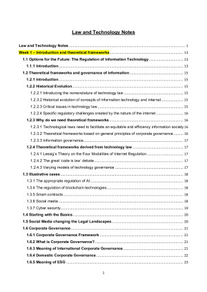 - A very well summarised, detailed set of full distinction notes for Law and Technology at Macquarie University for Juris Doctor and Undergraduate Law Students completing Law and Technology. - Contains summaries of all key cases, and all material from the whole course (textbook and lecture notes combined). - Colour coded to easily identify cases, statutes and key definitions/principles - Contains written notes from the lectures in red to understand the content easier - Content Material From Weeks 1-12 - Table of content included making it easy to navigate. -This will provide you with the best guidance for in-class tutorial questions as well as the final examination.