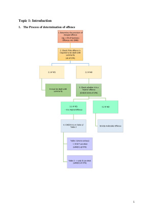 Notes for the final or weekly revision. It covers the following topics: I. Criminal Procedure 1. Introduction to criminal procedure 2. Police powers and discretion 3. Bail 4. Pre-trial Processes and appeals 5. Sentencing and punishment