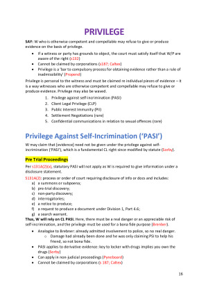 Extensive and comprehensive exam structure notes used to achieve a HD in the final exam of the subject. These notes have been prepared with close attention to the dictation in the lectures, Monash Tutorials, LSS Tutorials and the material in the Evidence Law Textbook. Specifically, these notes feature: - a step-by-step process to each topic which assist you in understanding how to structure and answer an exam question; - sentence starters for each step ( sample introduction sentences, mini and final conclusion sentences); and - Clear case summaries for ease of reference and analogising Topics include: 1. Introduction 2. Relevance 3. Competence and Compellability 4. Privilege 5. Examination of Witnesses 6. Character and Credibility 7. Options of the Accused 8. Tendency and Coincidence Evidence 9. Hearsay 10. Admissions 11. Illegally Obtained Evidence 12. Opinion Evidence