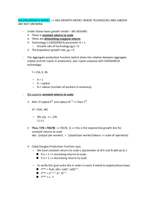 These notes are in-depth practical examples for the macroeconomic models tested in the exam. These HD notes include: => Summarised notes of: - the SOLOW-GROWTH model, - IS-LM-IP / Mundell-Fleming model - ENDOGENOUS GROWTH model => Easy to follow steps to complex equations and models => Highlighted and "***" equations to indicate extreme importance => Hand drawn and digital drawn diagrams to follow notes