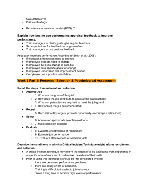 These notes are a summary of all the lecture outlines and include all the assessable content of this unit. This was a super enjoyable unit and revising these comprehensive notes helped me a lot in the final exam. The topics include: - Introduction to Organisational Psycholog - Job Analysis and Performance - Personnel Selection and Psychological Assessmen - Motivation and Attitudes - Fairness, Justice, & Diversity in the Workplace - Technology in the Workplace - Occupational Stress and Resilience - Teams and their Leaders - Training and Personality in the Workplace - Human Factors at Work - Career Development - The future of work: Cutting edge research