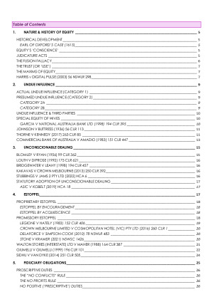 Comprehensive Equity & Trusts notes covering all topics. Topics include: - History and nature of equity - Unconscionable dealing and undue influence - Estoppel - Equitable Estates and Interests - Assignment of Property in Equity - Trusts - Equitable remedies and processes