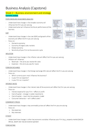 Concise and recent BAC notes. I used subheadings, colour-coding and diagrams to divide the material in a clear and understandable way, which was especially helpful in the final exam when trying to locate a specific piece of info. These notes cover all topics excluding introduction as I didn't find it useful: 1. Business environment and strategy 2. Communication, governance and risk 3. Accounting analysis 4. Financial analysis (I) 5. Financial analysis (II) 6. Non-financial analysis 7. Prospective analysis - forecasting 8. Prospective analysis - valuation (I) 9. Prospective analysis - valuation (II) 10. Business analysis and valuation application