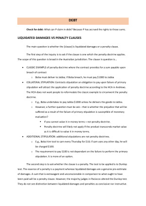 Notes to aid your understanding and enhance your knowledge. Pinpoint citations are included for better reference – to help you study better alongside the materials. Step by step analysis for hypo. Hypo Topics include: -- Expectation Loss -- Reliance Loss -- Distress Damages -- Consequential Loss -- Limiting Principles for Contracts -- ACL Claims -- Specific Relief: Specific Performance and Injunction -- LCA -- Recession -- Restitution for Unjust Enrichment -- Debt v Liquidated Damages -- Land, Goods, Economic Interests Damages -- Limiting Principles for Torts -- User damages -- Account of Profits -- Equitable Compensation ** Please note that these subject notes are purely for the purpose of aiding your understanding and enhancing your knowledge on the subject matter. Please paraphrase to avoid any plagiarism for your benefit.