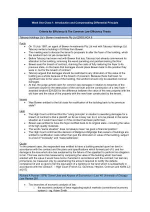 LAWS3335 Economic Analysis of Law - HIGH DISTINCTION (HD) NOTES