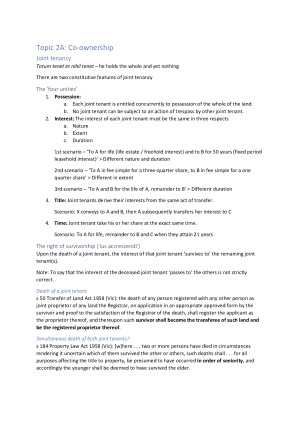 These HD notes cover all the topics found in LAW3402 Property B at Monash University and are up to date as of Semester 2, 2023. They cover all of the content of the unit, including background information, legal principles, and key cases. Every topic is organised under a clear and logical heading structure and will place you in a great position to participate in classes as well as prepare for assessments and the exam. Topics include: - Equitable interests arising by operation of law - Co-ownership - Mortgages - The Enforceability of Property Interests - The Torrens system and the ‘principle of indefeasibility’ - Exceptions to indefeasibility - Unregistered interests in Torrens land