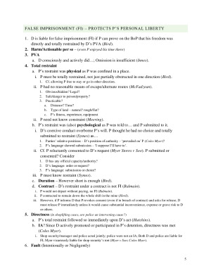 1 Trespass to person · Battery · Assault · False imprisonment · Defences 2 Trespass to land · Defence · Remedies 3 Private nuisance · Defence · Remedies 4 Negligence · Duty of care · Special duty (pure economic loss; pure mental harm) · Breach · Causation and remoteness · Defence · Damages · Vicarious liability