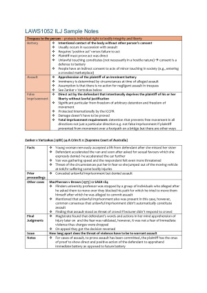 Topics Covered: - Developing and Legal Mind - Derrick v Cheung - Interpreting Statutes: Hickling v Laneyrie - Rule of Law: Kable - Aboriginal Dispossession and the Law - Common Law and Legal Reasoning: Scott v Shepherd - Intentional Torts (Assault, Battery, False Imprisonment) - Defences to Intentional Torts: Muscat v Spanner - Negligence: Donoghue v Stevenson - Equity - Judges and Judging - Mabo and Legal Change - Statutory Interpretation - Rule of Law