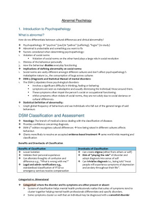 2023 PSYC1023 - Abnormal Psychology - HD(87) - DETAILED NOTES- COLOUR CODED