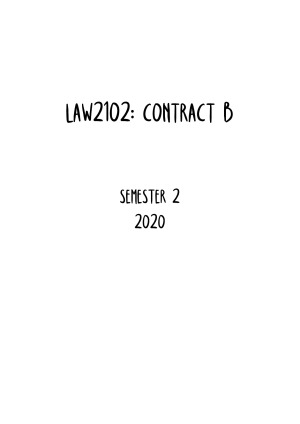 Comprehensive and detailed exam notes with script, compiled from lectures, readings and tutorials. Notes are detailed enough to allow for easy understanding while still being succinct in order to allow for quick navigation in an exam setting. These notes helped me achieve a final score of 82 in the unit, with - I'm gonna be real - pretty much zero effort / exam practice lol CLEAR CASE SUMMARIES FOR ALL CASES ON THE READING GUIDE **for my cohort, which was semester 2 2020 - you may need to update these notes to reflect any updates to the RG** The script is designed for minimal stress and thinking on your feet while in the exam, by: - Providing introductory sentence structures - Including dot points with different case and fact examples, as well as scenarios dealt with in tutorials - Background information where required & relevant tests/questions to ask Colour coded by topic to make for easy navigation in the exam. Topics include: - Right to terminate - Restrictions on the right to terminate - Consequences of termination - Remedies for breach - Frustration - Claiming payment under contract - Common law vitiating factors - Statutory vitiating factors