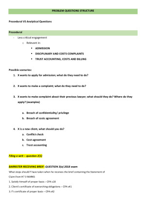 Detailed answer scaffolds for exam questions: - Advice on issue/question spotting - Admission - Trusts - Duties - Conflicts - Discipline - Confidentiality