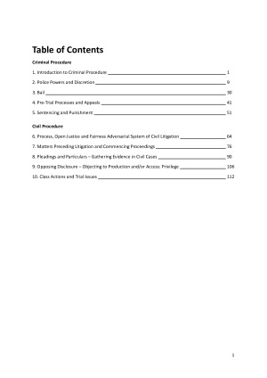 These notes provide a comprehensive and structured breakdown of Civil and Criminal Procedure, outlining all relevant case law, legislation, and succinct topic scaffolds that outline key principles and will prove invaluable in timed exam conditions. Cases outline: - Facts; - Issues; - Principles; and - Reasoning ✓ Comprehensive ✓ Structured ✓ Colour-coded ✓ Scaffolds Topics: Criminal Procedure 1. Introduction to Criminal Procedure 2. Police Powers and Discretion 3. Bail 4. Pre-Trial Processes and Appeals 5. Sentencing and Punishment Civil Procedure 6. Process, Open Justice and Fairness Adversarial System of Civil Litigation 7. Matters Preceding Litigation and Commencing Proceedings 8. Pleadings and Particulars – Gathering Evidence in Civil Cases 9. Opposing Disclosure – Objecting to Production and/or Access: Privilege 10. Class Actions and Trial Issues