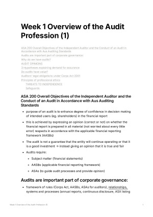 Great for exam prep, includes all key information that is tested in the final exam! Many months spent putting these notes together that I know will definitely help you ace that exam! Also, a bonus section included at the end that summarises the assertions and audit procedures that you need to know for ASA! Topics included: - Overview of the Audit Profession - The Audit Environment - The auditorʼs responsibilities - Understanding the client and identifying risks - The financial statements and risk (IR) - The role of internal controls in preventing and detecting errors (CR) - Deciding on the right audit strategy - Testing internal controls - Substantive testing - Finalising the audit engagement - BONUS - Summary of Assertions and Audit Procedures