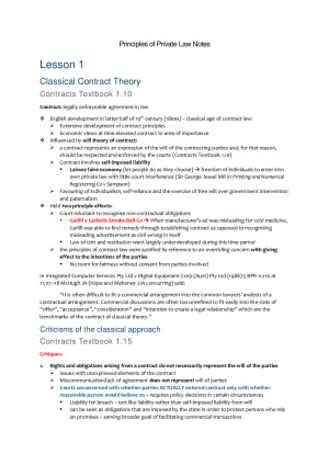 Topics Covered: - Class 1A: Agreement: Offer - Class 1B: Agreement: Acceptance - Class 2A: Consideration P1 - Class 2B: Consideration P2 - Class 3A: Intention to Create Legal Relations - Class 3B: Certainty - Class 4A: Privity P1 - Class 4B: Contracts (Revision) - Class 5A: Licenses, third parties, numerus clausus - Class 5B: New property AND The extent of property rights / property rights and privacy - Class 7A: The doctrine of fixtures - Class 7B: Torts for the protection of goods (continued) - Class 8A: Possession of land and adverse possession - Class 8B: Formal requirements for the transfer of land (continued) & The interest of a purchaser under a binding sale agreement & Part Performance - Class 9A: Equitable estoppel: Part 1 - Class 9B: Equitable estoppel: Part 2 - Class 10A: Agency - Class 10B: Revision Includes: - All Online Modules summarised - All lesson notes summarised between 1-3 pages