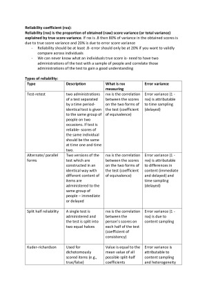 Hey! Thanks for checking out my notes. Should you choose to buy them, I am confident they will prove invaluable for mastering this subject, enhancing your assignment writing skills, and excelling in your exams. I achieved a score of 91 in this subject, and was the PAL leader for this subject. To create these notes, I have combined the lecture and tutorial content I used when I took the unit, in addition to integrating the PAL revision resources I created for this subject. The table of contents is as follows: Week 1: Introduction (lecture and practice questions) Week 2: Norms & Reliability (lecture) Week 3: Reliability & Validity (lecture and practice questions) Week 4: Test Construction (lecture), tem Response Theory (reading, lecture) Week 5: Revision (lecture and practice questions) Week 6: Fairness - Slope and Intercept (readings, tutorial) Week 8: Assessment of Intelligence (lecture notes, readings, practice questions, revision tables) Week 9: Assessment of Intelligence Cont. (lecture, revision tables, tutorial, reading) Week 10: Ethics in Psychological Assessment (reading, lecture, tutorial) Week 11: Personality (lecture) Week 12: Personality Cont. (lecture, tutorial, revision questions)