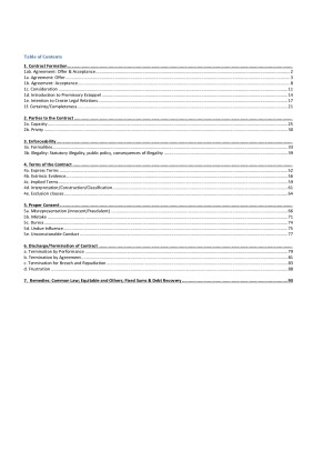 Comprehensive, easy to follow Contracts exam and class participation notes. These notes are indexed and organised by topic, covering all topics, key cases and legislation. I achieved an overall High Distinction (86%) in Contracts using these notes - they unpack each key part of the case law, legislation and components of a valid contract, serving as the perfect study material for the assessments and final exam. I found Contracts difficult and content-dense, but these notes made the difference! All topics including: • Agreement • Consideration • Certainty • Intention to Create Legal Relations • Formalities • Estoppel • Terms • Construction • Exclusion Clauses • Privity of Contract • Discharge by Performance • Discharge by Agreement • Termination for Failure of a Contingent Condition • Termination by Breach • Discharge for Delay • Discharge by Repudiation • Discharge by Frustration • Process and Effects of Termination • Vitiating Factors • Remedies