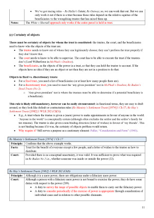 The notes are structured so as to cover the content in the same order as discussed in class. It is comprehensive as it includes case summaries, teacher’s comments, and annotated statute. The notes helped me do well in both the mid-semester and the final exam and were extremely useful under time pressure. The notes can be used for both the problem questions and the essay questions in the Advanced Trusts course. The notes include the following topics: 1. Theoretical perspectives 2. Nature of trusts 3. Irreducible core of trusteeship 4. Information rights 5. Exculpatory clauses 6. Court supervision 7. Ousting court supervision 8. Trust contracts and asset partitioning 9. Controlling trustee powers 10. Trust accounts 11. Business trusts 12. Securitisations 13. Debentures 14. Unit trusts
