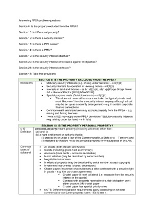 Everything you need for the exam! - - Australian Consumer Law - Sale of Goods Act - PPSA My notes are structured in a way that allows you to go step by step to answer problem questions.