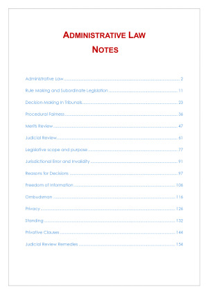 LPAB 09 ADMINISTRATIVE LAW EXAM NOTES The best ADMINISTRATIVE LAW summary that you will find!! Very organised notes. Used for Mar 24 exam. 17 on the assignment! Subject successfully completed!! Perfect for preparing for your exam. You don't have to check any other material! Very complete notes!! Topics Covered: Administrative Law Rule Making and Subordinate Legislation Decision-Making In Tribunals Procedural Fairness Merits Review Judicial Review Legislative scope and purpose Jurisdictional Error and Invalidity Reasons for Decisions Freedom of Information Ombudsman Privacy Standing Privative Clauses Judicial Review Remedies