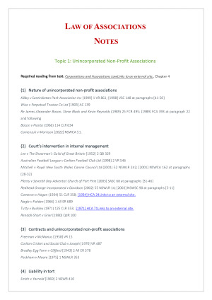 LPAB 10 LAW OF ASSOCIATIONS EXAM NOTES The best LAW OF ASSOCIATIONS summary that you will find!! Very organised notes. Used for Mar 24 exam. PM - passed with merit Perfect for preparing for your exam. You don't have to check any other material! Very complete notes!! Tips for exams! Topics Covered: Topic 1: Unincorporated Non-Profit Associations Topic 2: Incorporated Non-Profit Associations Topic 3: The Law of Partnership Topic 4: Company Law - A company as a corporate entity Topic 5: The Law of Corporate Governance Topic 6: Company Law - The Law of Corporate Liability