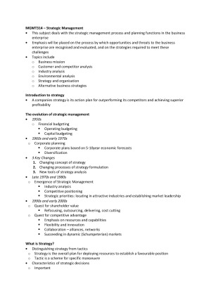 Extensive MGMT314 notes of all lectures and some textbook material added. Highly detailed and clearly labelled. Complete coursework and information to pass MGMT314.
