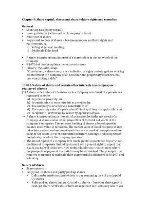 These notes have been set out so clearly that someone who had not sufficiently studied this subject could look at these notes and pass the final exam. They are detailed, yet concise. They are bolded and dot pointed, so that each principle is clearly understood, therefore ensuring you do not lose marks for missing a relevant legal principle/case. They really helped me do well in this subject as I relied heavily on these notes.