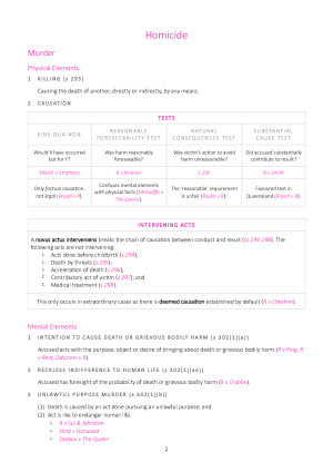 Concise but detailed notes for Criminal Law containing all weeks of content. Topics include: - Murder - Voluntary Manslaughter - Involuntary Manslaughter - Assault - Sexual Offences - Offences Relating to Property - Fraud - Extensions of Criminal Liability - Self-Help Defences - Criminal Procedure - Insanity - Intoxication
