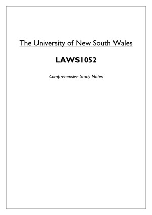 These are extremely comprehensive study notes covering ALL of the content in the LAWS1052 ('Introduction to Law and Justice') course at the University of New South Wales. The following topics are covered: - Introducing ILJ - Briefing a case, the concept of jurisdiction, the doctrine of precedent and courts in action - The importance of statute law and an introduction to statutory interpretation - The courts in action: jurisdiction, hierarchy, adversarialism and the court experience - The idea of law in the English Civil Wars and the Glorious Revolution; rule of law revisited - The impact of English heritage and law on Indigenous people - Precedent and approaches to judicial decision making - Classifying Australian law - Mabo, the independent development of Australian common law and Indigenous traditions - The modern legal profession and social justice - Judicial decision-making in an age of statute; justice and the rule of law - Intentional torts: battery, assault and false imprisonment - Defences to intentional torts: consent and necessity - The rise of the tort of negligence through precedent - Statutory interpretation All course readings and relevant precedents are also included within the notes, with a majority derived from Prue Vines' 'Law and Justice in Australia'. This course was studied and includes all content from Weeks 1 to 12 of Trimester 1 of 2024.