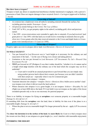 CONCISE EXAM NOTES - USEFUL FRAMEWORKS FOR EACH TOPIC ACHIEVED OVERALL TOPICS COVERED: - Meaning and purposes of the concept of property - Nature of land - Fragmentation of proprietary interests - Acquisition, transfer and priority of proprietary interests - Possession and title - Co-ownership