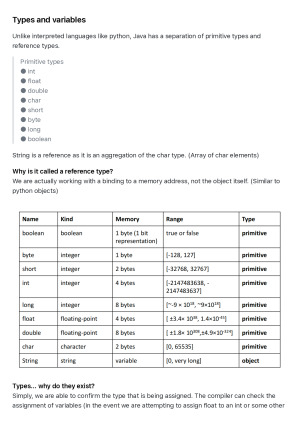 Includes: - Definitions and explanations - Annotated code examples with syntax highlighting for readability - Notes from week1 to week13 for 2024S1 Week 01 1. Introduction to the unit; 2. Compilation; 3. Syntax; 4. Conditional statements; 5. Scope and lifetimes Week 02 1. Loop and static methods; 2. Contiguous memory; 3. Arrays and strings Week 03 1. Classes and instance methods; 2. File IO and binary IO Week 04 1. Static and Non-static context; 2. Memory Layout; 3. Collections and Abstract Data Types Week 05 1. Inheritance and encapsulation; 2. Overloading and overriding Week 06 1. Abstract classes and interfaces; 2. Polymorphism; 3. Default methods 4. Gradle, Packaging, Classpath and Java Archives; Week 07 1. Generics and checked types; 2. Type bounds and collection onterfaces Week 08 1. Exceptions and error handling; 2. Testing and automation Week 09 1. Recursion with OOP; 2. Enums and optionals Week 10 1. Anonymous Classes and lambdas Week 11 1. Java Wildcards 2. Debugging Week 12 1. Revision-01 Week 13 1. Revision-02 2. Overview of Exam Structure