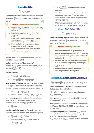 Are you ready to excel in MATH1052: Ordinary Differential Equations and Multivariate Calculus? My comprehensive study guide is designed to help you understand the material thoroughly, stay on top of each topic, and perform brilliantly in your final exam. Here’s what my study guide offers: - **Thorough Explanations**: I’ve broken down each topic to ensure you grasp the fundamental concepts. - **Engaging Layout**: Colour-coded sections, 3D diagrams, and mnemonics to make learning more effective and enjoyable. - **Easy-to-Read Dot Points**: My notes are written in concise dot points, making them easier to scan and review. - **Complete Coverage**: Includes key topics such as Ordinary Differential Equations, Slope Fields & Equilibrium Solutions, Euler’s Method, Simple Harmonic Motion & Damped Oscillations, Conic Sections, Contours & Cross-Sections, Quadric Surfaces, Partial Derivatives & Tangent Planes, Chain Rule & Implicit Differentiation, Critical Points & Optimisation, Constrained Optimisation, Parametrisation of Curves, Line Integrals & Work Done. I’ve invested countless hours creating these notes to ensure they are easy to follow and helpful for your studies. Plus, I’ve included some fun Easter Eggs throughout the guide to keep you engaged! Prepare to ace your exams and make your study sessions more productive and enjoyable with my study guide. Good luck! 😊