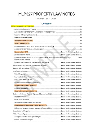 HD 2024 Property Law Notes MLL327 / MLP327