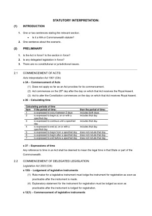 Detailed exam notes covering all examinable topics: - Statutory interpretation - Interpretation Acts - Extrinsic materials - Delegated legislation - Contractual interpretation - Statutory vs contractual interpretation Structure for statutory interpretation question - pg 1-18 Short essay question prep (statutory / contractual interpretation) - pg 19-26 Additional contractual interpretation notes - pg 27-37